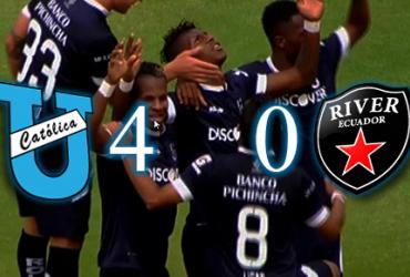 Universidad Católica goleó a River Ecuador por 4-0, en un encuentro válido por la fecha 18 del Campeonato Ecuatoriano de Fútbol, disputado en el estadio Olímpico Atahualpa.